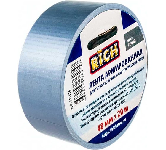 Лента армированная ТПЛ Серая 48 мм х 20 м