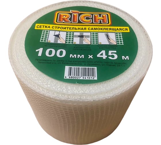 Сетка строительная самоклеящаяся РИЧ — это эластичный и тонкий сетчатый материал с нанесенным с одной стороны специальным липким слоем для удобства эксплуатации. Самоклеящаяся серпянка создана из стекловолокна со специальной пропиткой, поэтому не боится воздействия влаги, щелочей, кислот и любых других агрессивных жидкостей. Удобно крепится на любую поверхность без дополнительных усилий.